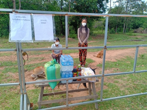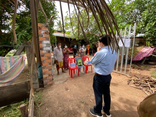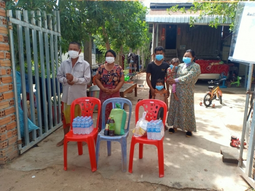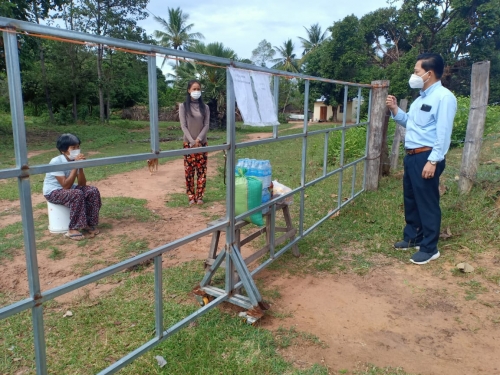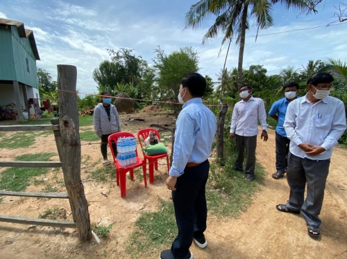 លោកបានធ្វើការណែនាំកុំឱ្យដើរទៅណាមកណាឱ្យក្នុង អំឡុង ពេលធ្វើចត្តាឡីស័កនៅផ្ទះជួយទប់ស្កាត់ការរីករាលដាលជំងឺ ត្រូវពាក់ម៉ាស់ ថែរក្សាសុខភាព ផឹកទឹកក្តៅ ទឹកក្រូចឆ្មា រំហាត់ប្រាណ អនុវត្តតាមការណែនាំរបស់ក្រសួងសុខាភិបាល និងវិធានរបស់រាជរដ្ឋាភិបាលកម្ពុជា ៣ការពារ ៣កុំ។ លោក បាននាំយកអំណោយរបស់ក្រុមការងារ ផ្តល់ជូនក្នុងមួយគ្រួសារៗ ទទួលបាន អង្ករចំនួន ១០គីឡូក្រាម ទឹកត្រី ១ដប ទឹកសុីអុីវ ១ដប មី ១៥កញ្ចប់ ទឹកសុទ្ធ ២យួរ ដើម្បីជួយសំរាលក្នុងបន្ទុកជីវភាពខ្វះខាតប្រចាំថ្ងៃក្នុងអំឡុងពេលធ្វើចត្តាឡី ស័ក នៅតាមខ្នងផ្ទះ។