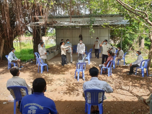 ថ្ងៃសុក្រ ១៥រោច ខែបឋមាសាឍ ឆ្នាំ ឆ្លូវ ត្រីស័ក ព.ស ២៥៦៥ ត្រូវនឹងថ្ងៃទី ០៩ខែ កក្កដា ឆ្នាំ ២០២១ លោក ផាត់ សារុន ប្រធានការិយាល័យផលិតកម្ម និងបសុព្យាបាល បានចុះសំណេះសំណាលជាមួយភ្នាក់សុខភាពសត្វភូមិក្នុងឃុំតាលោ ស្រុកតាលោសែនជ័យ ដោយមានសមាសភាពចូលរួម លោក ក្រុមប្រឹក្សាឃុំ ០១រូម មន្ត្រីការិ.ផបខេត្ត និងស្រុក០២រូប និង ភ្នាក់ងារសុខភាព សត្វភូមិ ១៩នាក់ ។គោលបំណងនៃកិច្ចប្រជុំ- រៀបចំផែនការចុះយុទ្ធនាការ ចាក់វ៉ាក់សារទឹក និង អុតក្តាមគោ ក្របី គ្រប់ភូមិក្នុងស្រុកតាលោសែនជ័យ (ជំនួយចិន) និងណែនាំ ពង្រឹងការការពារនិងទប់ស្កាត់ជំងឺដុំពក ស្បែក គោ ក្របី ។