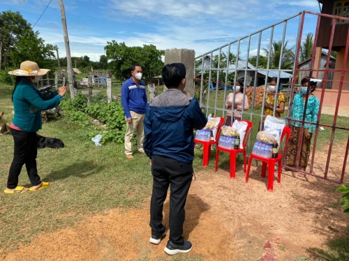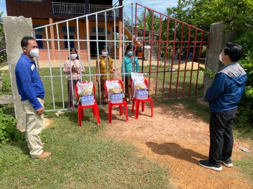 លោកបានធ្វើការណែនាំថាបច្ចុប្បន្ននេះជំងឺកូវីដ-១៩ វាបានបំប្លែងខ្លួនថ្មី(ដែលតា) ឆ្លងលឿនជាងមុន ពីមនុស្សម្នាក់ទៅមនុស្សម្នាក់ ទៀត សូមកុំទៅណាមកណាក្នុងអំឡុងពេលកំពុងធ្វើចត្តាឡីស័ក ត្រូវពាក់ម៉ាស់ លាងដៃនិងអាកុល ឬសាប៊ូ ចេះថែរក្សាសុខភាព ផឹកទឹកក្តៅ ទឹកក្រូចឆ្មា រំហាត់ប្រាណ អនុវត្តតាមការណែនាំរបស់ក្រសួងសុខាភិបាល និងវិធាន ៣ការពារ ៣កុំ របស់រាជរដ្ឋាភិបាលកម្ពុជា។ លោកបានពាំនាំអំណោយជាអង្ករដ៏ថ្លៃថ្លារបស់ឯកឧត្តមអភិបាលនៃគណៈអភិបាលខេត្ត និងលោកជំទាវ ផ្តល់ជូនក្នុងមួយគ្រួសារៗទទួលបានអង្ករ ចំនួន១០គីឡូក្រាម និងក្រុមការងារមាន មី១០កញ្ចប់ទឹកត្រី ១ដប ទឹកសុីអុីវ ១ដប ទឹកសុទ្ធ ១យួជួយសម្រាលការខ្វះខាតប្រចាំថ្ងៃក្នុងអំឡុងពេល ធ្វើចត្តាឡីស័ក។