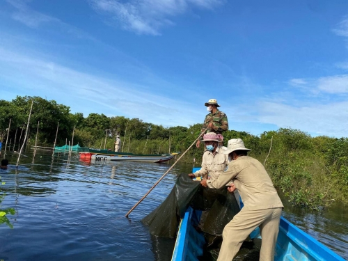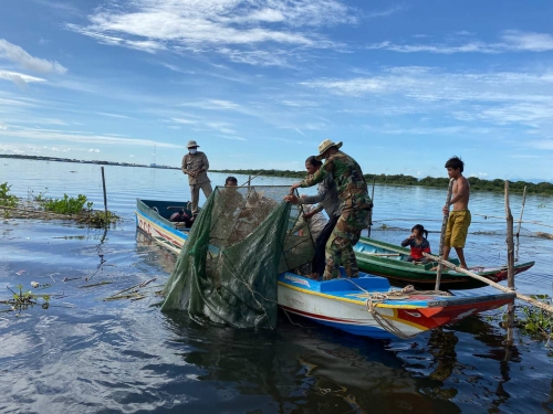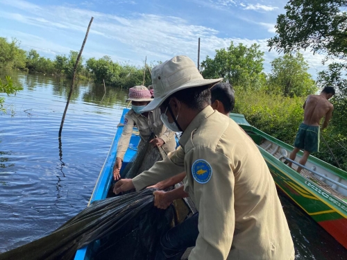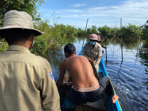 ថ្ងៃសុក្រ ៥កើត ខែស្រាពណ៍ ឆ្នាំឆ្លូវ ត្រីស័ក ព.ស ២៥៦៥ ត្រូវនឹងថ្ងៃទី ១៣ខែ សីហា ឆ្នាំ២០២១ លោក ឆាយ មន នាយរងខណ្ឌ រដ្ឋបាលជលផលពោធិ៍សាត់ រួមជាមួយលោកនាយផ្នែក នាយសង្កាត់កំពង់លួង អធិការដ្ឋានរដ្ឋបាលជលផលខាងត្បូងបឹងទន្លេសាប យោធាខេត្ត ដោយប្រើកម្លាំងសរុប ១៨នាក់ មធ្យោបាយកាណូតចំនួន០៥ គ្រឿង បានចុះត្រួតពិនិត្យ និងបង្រ្កាបបទល្មើសជលផល ចាប់ពីចំនុច ចំណងក្របី(ខាងលិចកំពង់លួង) ឃុំ អន្លង់ត្នោត រហូតដល់ ចំនុចអាកល់ ឃុំអូរសណ្ដាន់ ស្រុកក្រគរ ជាលទ្ធផល បាន ០២ករណី ទាញបំផ្លាញចោល ៖