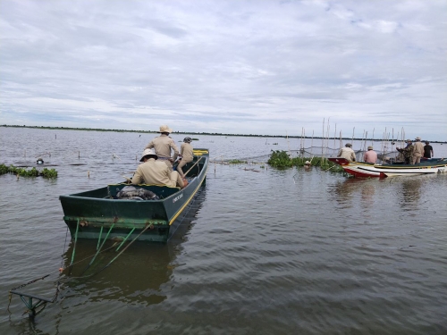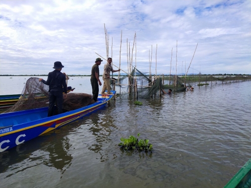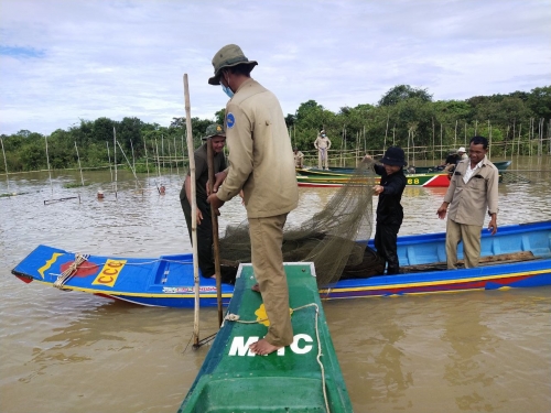 សហការណ៍ជាមួយ អធិការដ្ឋានរដ្ឋបាល ជលផលខាងត្បូងបឹងទន្លេសាប យោធាខេត្តនិងសហគមន៍នេសាទស្រីចឹក កម្លាំង សរុប ២៣នាក់ មធ្យោបាយកាណូតចំនួន ០៤ គ្រឿង បានចុះប្រតិបត្តិការត្រួតពិនិត្យ និងបង្រ្កាបបទល្មើសជលផល នៅចំណុច ចុងស្ទឹងពោធិ៍សាត់ ភូមិកោះក្អែក ឃុំរាំងទិល ស្រុកកណ្ដៀង ខេត្តពោធិ៍សាត់ ជាលទ្ធផលរុះរើបំផ្លាញចោល វត្ថុតាងរួមមាន÷