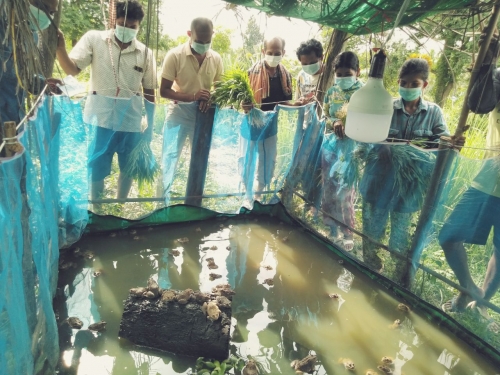 ថ្ងៃពុធ ២កើត ខែភទ្របទ ឆ្នំាឆ្លូវ ត្រីស័ក ព.ស ២៥៦៥ ត្រូវនឹងថ្ងៃទី៨ ខែកញ្ញា ឆ្នំា២០២១ ក្រុមការងារអនុគម្រោងប្រព័ន្ធស្រោចស្រពដំណាក់អំពិល បានរៀបចំទិវាបង្ហាញស្តីពីប្រព័ន្ធកសិកម្មចម្រុះ របស់គម្រោងស្តារឡើងវិញប្រព័ន្ធស្រោចស្រព និងរំដោះទឹកភាគខាងលិចបឹងទន្លេសាប(CP-P11)ក្រោមជំនួយថវិកាពីJICAសហការជាមួយមន្ទីរកសិកម្ម រុក្ខាប្រមាញ់ និងនេសាទខេត្តពោធិ៍សាត់ ដែលមានកសិករចូលរួមសរុប១៨នាក់, ស្រី១២នាក់នៅភូមិបឹងប្រិយ៍ ឃុំត្រពំាងជង ស្រុកបាកាន ខេត្តពោធិ៍សាត់ ។ តាមរយ:ការពិនិត្យ និងចុះស្ទង់ទិន្នផល របស់ក្រុមការងារលើកសិករអនុវត្តបង្ហាញ ឈ្មោះ ម៉េន ពៅ ភេទប្រុស អាយុ៤១ឆ្នំា បានធ្វើបង្ហាញប្រព័ន្ធកសិកម្មចម្រុះ(មាន់ ,កង្កែប និងត្រកួន) ទំហំផ្ទៃដី ២០អា ទទួលបានលទ្ធផលដូចខាងក្រោម: