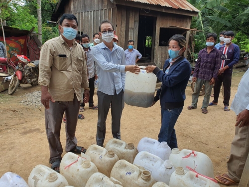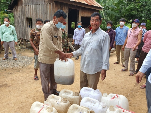 មេភូមិ អនុភូមិ និងសមាជិក ក្រុម អាជីវកម្ម ទាំងពីរបណ្តុំ។ ក្នុងពេលនោះដែរ លោកអនុប្រធានបានផ្តាំផ្ញើដល់ សមាជិកក្រុមអាជីវកម្ម ឱ្យយកចិត្តទុក ដាក់ ការងារផលិតកម្មចិញ្ចឹមត្រី អណ្តែង ដោយអនុវត្តតាមបច្ចេកទេសត្រឹមត្រូវ ក្នុងករណីមានបញ្ហា ត្រូវទំនាក់ទំនងមកខណ្ឌរដ្ឋបាលជលផល ជួយដោះស្រាយទាន់ពេលវេលា។ ឆ្លៀតពេលកំឡុង ការរីករាលដាលជំងីកូវីត១៩ សុំថែរក្សា អនាម័យ និងអនុវត្តតាមការណែនាំ របស់ក្រសួងសុខាភិបាល និង អនុសាសន៍ដ៍ថ្លៃថ្លារបស់ សម្តេចតេជោ «៣ការពារ និង ៣កុំ» ដោយចាប់ពីខ្លួនយើងផ្ទាល់ ក្រុមគ្រួសារ និងសហគមន៍ផងដែរ។