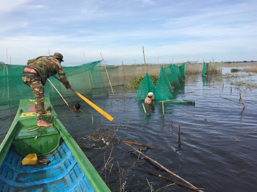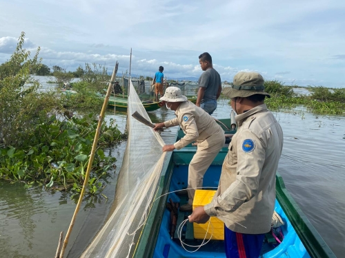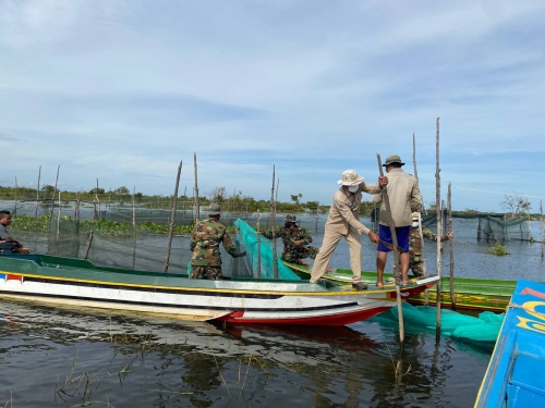 ចុះប្រតិបត្តិការត្រួតពិនិត្យ និងបង្រ្កាបបទល្មើសជលផល នៅចំណុច ខាងលិចចារុះភូមិចារុះ ឃុំរាំងទិល ស្រុកកណ្ដៀង ខេត្តពោធិ៍សាត់ ជាលទ្ធផលបានរុះរើបំផ្លាញចោលវត្ថុតាង រួមមាន៖