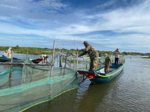 ថ្ងៃព្រហស្បតិ៍ ០៦រោច ខែកក្ដិក ឆ្នាំឆ្លូវ ត្រីស័ក ព.ស ២៥៦៥ ត្រូវនឹងថ្ងៃទី ២៥ ខែវិច្ឆិកា ឆ្នាំ ២០២១ ក្រុមការងារចម្រុះដឹកនាំ ដោយលោក ភុំ វិមល នាយខណ្ឌរដ្ឋបាលជលផលពោធិ៍សាត់ រួមមាន លោកនាយផ្នែកក្រគរ លោកនាយសង្កាត់កំពង់លួង អធិការដ្ឋានរដ្ឋបាលជលផលខាងត្បូងបឹងទន្លេសាប ប៉ូលីសសេដ្ឋកិច្ចខេត្ដ បរិស្ថានស្រុកក្រគរ យោធាខេត្ត បានចុះអធិការកិច្ច អប់រំ ផ្សព្វផ្សាយ និងបង្រ្កាបបទល្មើសនេសាទ នៅ ឃុំកំពង់លួង រហូតដល់ភូមិកំពង់ប្រាក់ ឃុំ ស្នារអន្សា ស្រុកក្រគរ ដោយប្រើប្រាស់កម្លាំងសរុប ១៧នាក់ មធ្យោបាយកាណូតចំនួន០៥គ្រឿង ជាលទ្ធផល ០២ ករណី រុះរើបំផ្លាញចោលវត្ថុតាងរួមមាន :