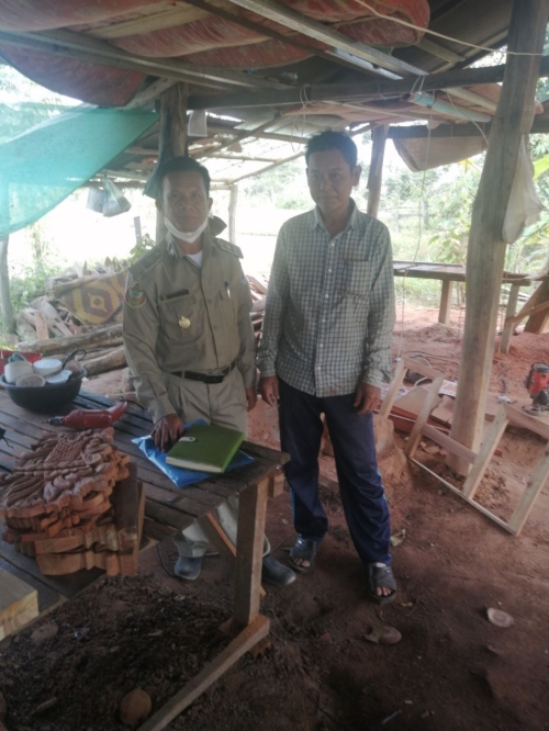 តាមរយៈការសាកសួរ និងពិនិត្យឃើញថា មិនមានលិខិតអនុញ្ញាតិពីខណ្ឌរដ្ឋបាលព្រៃឈើ សង្កា់រដ្ឋបាលព្រៃឈើបានណែនាំ និងធ្វើកិច្ចសន្យា បញ្ឈប់រយៈពេល០៥ ថ្ងៃ ក្នុងករណីម្ចាស់មិនបានអនុវត្ត ជំនាញ នឹងចាត់វិធានការតាមច្បាប់