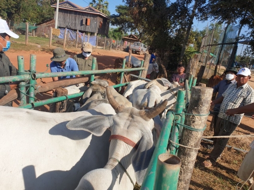ថ្ងៃព្រហស្បត្តិ៍១២កើត ខែមិគសិរ ឆ្នាំឆ្លូវ ត្រីស័ក ពស ២៥៦៥ ត្រូវនឹងថ្ងៃទី១៦ ខែធ្នូ ឆ្នាំ២០២១ការិយាល័យផលិតកម្ម និងបសុព្យាបាលបានចុះអនុវត្តធ្វើអត្តសញ្ញាណកម្មគោដោយកិបផ្លាកលើត្រចៀកគោ និងចាក់វ៉ាក់សាំងសារទឹផងបានចំនួន ៣៩ក្បាល នៅភូមិ ខ្មារ ។