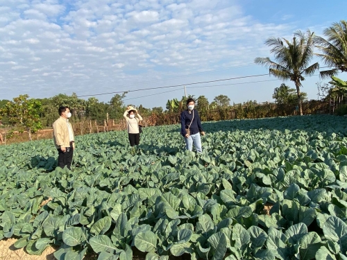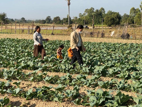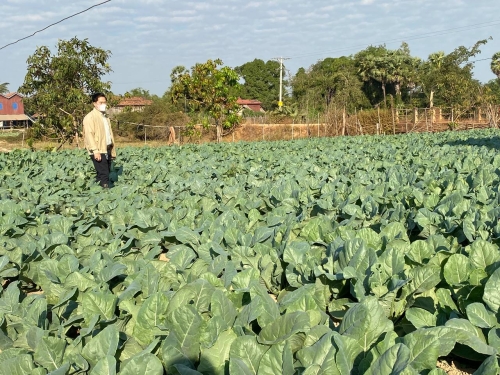 កសិកម្ម រុក្ខាប្រមាញ់ និងនេសាទខេត្តពោធិ៍សាត់ និងក្រុមការងារ បានចុះទៅត្រួតពិនិត្យ និងតាមដានស្ថានភាពការដំាដុះបន្លែសុវត្ថិភាព របស់កសិករ ផែ រី អាយុ ៥១ ឆ្នាំ នៅភូមិជ្រែង ឃុំស្វាយលួង ស្រុកកណ្តៀង ខេត្តពោធិ៍សាត់។ ដំណាំបន្លែខាត់ណាផ្កា ផ្ទៃដី១០អា កំពុងថែទាំ។