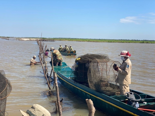 ថ្ងៃពុធ ០២រោច ខែបុស្ស ឆ្នាំឆ្លូវ ត្រីស័ក ព.ស ២៥៦៥ ត្រូវនឹងថ្ងៃទី ១៩ ខែ មករា ឆ្នាំ ២០២២ ក្រុមការងារនៃមន្ទីរកសិកម្ម រុក្ខាប្រមាញ់ និងនេសាទ ខេត្ដពោធិ៍សាត់ ដឹកនាំដោយលោក ភុន សុវណ្ណា នាយផ្នែកក្រគរ រួមមានកម្លាំងសង្កាត់ជលផលកំពង់លួង សហកាជាមួយគណៈបញ្ជាការ ឯកភាពរដ្ឋបាលស្រុកក្រគរដឹកនាំដោយ លោក ខាត់ ពុយ អភិបាលរងស្រុក រួមមាន៖ កងរាជអាវុធហត្ថខេត្ត-ស្រុកក្រគរ បរិស្ថាន, យោធាខេត្ដ ដោយប្រើកម្លាំងសរុប ១៦នាក់ មធ្យោបាយកាណូតចំនួន ០៤គ្រឿង ចុះទៅរុះរើ និងបំផ្លាញចោលឧបករណ៍នេសាទខុសច្បាប់ នៅចំនុចប្រឡាយតាពេជ្រ និងព្រែកស្ដេចក្មេង ព្រំប្រទល់ខេត្តពោធិ៍សាត់ និងខេត្តកំពង់ឆ្នាំង ជាលទ្ធផលបាន ០១ ករណី រុះរើបំផ្លាញចោល វត្ថុតាងរួមមាន៖