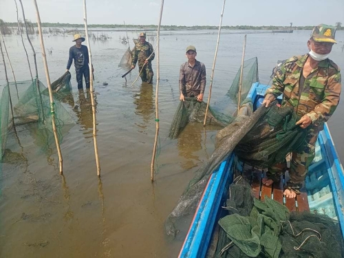 ថ្ងៃសុក្រ ៣កើត ខែមាឃ ឆ្នាំឆ្លូវ ត្រីស័ក ព.ស ២៥៦៥ ត្រូវនឹងថ្ងៃទី៤ ខែ កុម្ភៈ ឆ្នាំ ២០២២ ផ្នែករដ្ឋបាលជលផលរាំងទិល មានកម្លាំងសរុប ០៦នាក់ កាណូត ០២គ្រឿង បានចុះធ្វើការរុះរើបំផ្លាញចោលនូវឧបករណ៍នេសាទទំនើប លូស្បៃមុងនៅចំណុច ព្រែកខ្នាច រហូតមកដល់ មាត់ពាមព្រែកកី ភូមិដីរនាត ឃុំមេទឹក ស្រុកបាកាន ខេត្តពោធិ៍សាត់ ។