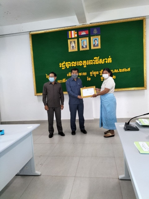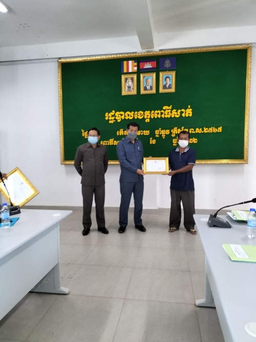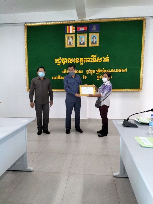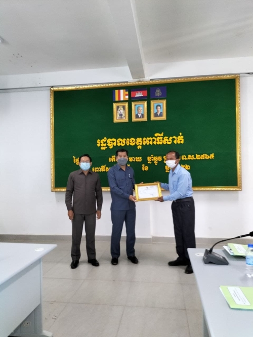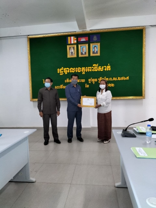 ថ្ងៃអង្គារ ៧កើត ខែមាឃ ឆ្នំាឆ្លូវ ត្រីស័ក ព.ស ២៥៦៥ ត្រូវនឹងថ្ងៃទី៨ខែកុម្ភ:ឆ្នំា២០២២ លោក កែវ ច័ន្ទកែវ អនុប្រធានមន្ទីរ, លោកស្រី ជ័យ ចន្នី អនុប្រធានមន្ទីរ និងលោកស្រី សួង កញ្ញា អនុប្រធានការិយាល័យរដ្ឋបាល-បុគ្គលិក បានចូលរួមកម្មវិធីរៀបចំសិក្ខាសាលាផ្សព្វផ្សាយ ការចងក្រងសមាជិកចលនា ភូមិមួយផលិតផលមួយ និងពិធីចែកវិញ្ញាបនបត្រ ទទួលស្គាល់ផលិតផល ភូមិមួយ ផលិតផលមួយ នៅសាលប្រជុំសាលាខេត្តពោធិ៍សាត់ ក្រោមអធិបតីភាព ឯកឧត្តម អ៊ឹង គឹមលាង អភិបាលរងនៃគណ:អភិបាលខេត្តពោធិ៍សាត់ ។ សមាសភាពចូលរួមមាន: