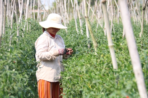 ថ្ងៃច័ន្ទ១៣កេីត ឆ្នាំឆ្លូវ ត្រីស័ក ព.ស២៥៦៥ ត្រូវនឹងថ្ងៃទី១៤ ខែកុម្ភៈ ឆ្នាំ២០២២ លោក ឡាយ វិសិដ្ឋ ប្រធានមន្ទីរកសិកម្ម រុក្ខាប្រមាញ់ និងនេសាទ ខេត្តពោធិ៍សាត បានអញ្ចើញទៅពិនិត្យចំការបន្លែ លោក ណម ឆយ អាយុ ៥៥ឆ្នាំ នៅភូមិ ចំការអូរ ឃុំត្រពាំងជង ស្រុកបាកាន។ នៅក្នុងចំការ មានដាំដំណាំដូចជា ផ្កាខាត់ណា ផ្ទៃដីដាំដុះទំហំ ១៥អា កំពុងតែថែទាំ និងមិនទាន់បានប្រមូលផលនៅឡើយទេ។ បន្លែផ្កាខាត់ណា កំពុងថែទាំនៅក្នុងផ្ទះសំណាញ់ ដែលគាំទ្រថវិកាដោយកម្មវិធី ASPIRE នៃមន្ទីរកសិកម្ម រុក្ខាប្រមាញ់ និងនេសាទ ខេត្តពោធិ៍សាត់។ ចំណែកចំការម្ទេស ផ្ទៃដីដាំដុះទំហំ ១០អា កំពុងប្រមូលផលបានសរុបចំនួន ១.២៣៧គីឡូក្រាម លក់តម្លៃ ៩.០០០រៀល ទៅ ១២.០០០ រៀល ក្នុងមួយគីឡូក្រាម ។ បន្លែទាំងអស់ កសិករបានលក់ជាក្រុម និងយកទៅអោយម៉ូយនៅផ្សារភួពុយ ដែលជាផ្សារបោះដុំកសិផលកសិកម្ម ស្ថិតនៅក្នុងទីរួមខេត្តពោធិ៍សាត់ ។