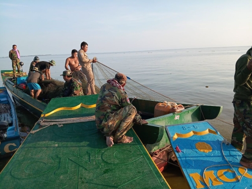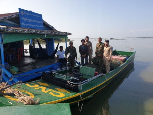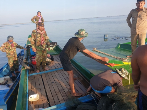 ស៉ើបការទី០៥ ប្រចាំទិសទន្លេសាប បានចុះប្រតិបត្តិការត្រួតពិនិត្យ និងបង្រ្កាបបទល្មើសជលផល នៅចំនុចស្លាបស្ទាំង ចំនុចនិយាមការ (X : 036937,Y:1436913 ) ភូមិព្រែកក្រ ឃុំមេទឹក ស្រុកបាកាន ខេត្តពោធិ៍សាត់ ជាលទ្ធផល (០១ករណី) រឹបអូសបានវត្ថុតាង រួមមាន៖