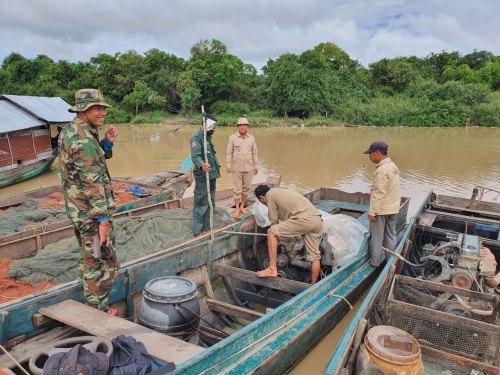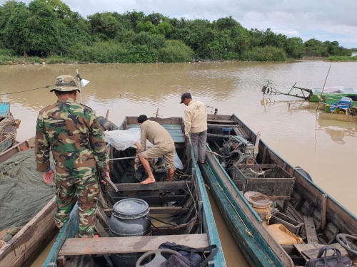 ថ្ងៃចន្ទ ៣កើត ខែចេត្រ ឆ្នាំឆ្លូវ ត្រីស័ក ព.ស ២៥៦៥ ត្រូវនឹងថ្ងៃ៤ ខែមេសា ឆ្នាំ ២០២២ កម្លាំងសមត្ថកិច្ចសង្កាត់រដ្ឋបាលជលផលកណ្ដៀង ដឹកនាំដោយ លោក ហុក ម៉េងអាន នាយសង្កាត់សហការណ៍ជាមួយ មន្រ្តីបរិស្ថាន មេប៉ុស្តិ៍រាំងទិល មេឃុំរាំងទិល និងយោធាខេត្ត បានចុះស្រាវជ្រាវរុករកឧបករណ៍ល្មើសច្បាប់ អួនអូសទឹកសាប (ឆក់ត្រជាក់-ក្ដៅ) ឈិបយន្ត ។ ក្រោយការរុករកយ៉ាងយូរ ក្រុមការងារបានប្រទះឃើញទូកផ្ទុកសាច់អួនហ៊ុមក្រឡាល្អិតដែលជាឧបរកណ៍ល្មើសច្បាប់ដែលជនសង្ស័យយកទៅប្លុងចោល នៅចំណុចភូមិកោះកែវ ឃុំរាំងទិល ស្រុកកណ្តៀង ខេត្តពោធិ៍សាត់ ឧបករណ៍ល្មើសមានដូចខាងក្រោម:
