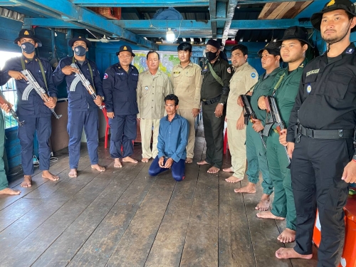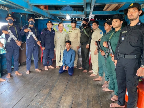 ងៃចន្ទ ៩រោច ខែចេត្រ ឆ្នាំខាល ចត្វាស័ក ព.ស ២៥៦៥ ត្រូវនឹង ថ្ងៃទី២៥ ខែមេសា ឆ្នាំ២០២២ ក្រុមការងារថ្នាក់ជាតិ បង្ក្រាបបទល្មើសជលផលប្រចាំការ នៅបឹងទន្លេសាបមានទីតាំងនៅកន្លែងអភិរក្សជលផលជ្រោយស្ដី សហការជាមួយអនុគណះកម្មការ និងក្រុមការងារបង្ក្រាបបទល្មេីសជលផលក្នុងខេត្តពោធិ៍សាត់ បានចុះប្រតិបត្តិការបង្ក្រាបបទល្មើសជលផល ដោយឧបករណ៍នេសាទ ជំរុញដោយកម្លាំងម៉ាស៊ីន នៅចំនុចកំពង់ឃ្នាស់ ភូមិកំពង់លើ ឃុំ ក្បាលត្រាច ស្រុក ក្រគរ ។ ក្រុមការងារ បានចាប់ ឃាត់ខ្លួន ជនសង្ស័យ ចំនួន ០១ នាក់ រួមនិង វត្ថុតាង ដូចខាងក្រោម