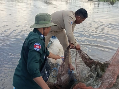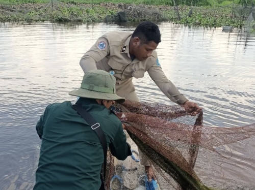 ថ្ងៃចន្ទ័ ០៩រោច ខែចេត្រ ឆ្នាំឆ្លូវ ត្រីស័ក ព.ស ២៥៦៥ ត្រូវនឹងថ្ងៃ២៥ ខែមេសា ឆ្នាំ២០២២ កម្លាំងសង្កាត់រដ្ឋបាលជលផលបាកាន សហការជាមួយកម្លាំងអធិការដ្ឋាននគរបាលស្រុកបាកាន ប្រើប្រាស់កម្លាំងសរុបចំនួន ០៥នាក់ និងកាណូត០១គ្រឿង បានចុះប្រតិបត្តិការត្រួតពិនិត្យ និងបង្រ្កាបបទល្មើសជលផល បាន០២ករណី (មងរាយ និងសម្រាស់) នៅក្នុងកន្លែងអភិរក្សជលផលដីរនាត និងព្រែកក្បាលតោល ស្ថិតនៅភូមិព្រែកក្រ ឃុំមេទឹក ស្រុកបាកាន វត្ថុតាងរួមមាន:
