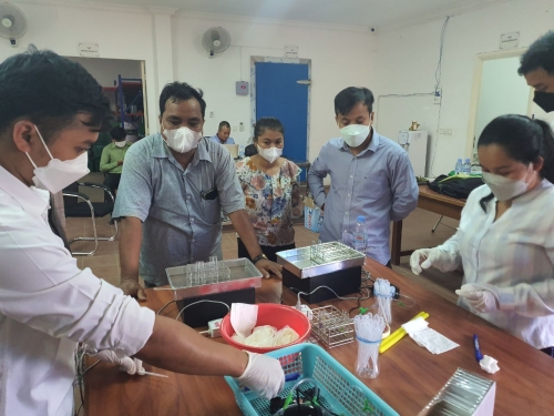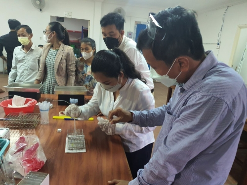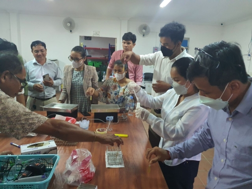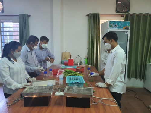 ថ្ងៃពុធ ៤កើត ខែពិសាខ ឆ្នាំខាល ចត្វាស័ក ព.ស ២៥៦៥ ត្រូវនឹង ថ្ងៃទី៤ ខែឧសភា ឆ្នាំ២០២២ លោក មាស សេត ប្រធានការិយាល័យក្សេត្រសាស្ត្រ និងផលិតភាពកសិកម្ម លោក ហ៊ន់ សុវណ្ណ ប្រធានការិយាល័យផ្សព្វផ្សាយកសិកម្ម រុក្ខាប្រមាញ់ និងនេសាទ និងលោកស្រី ដឹប ម៉ារីណា មន្ត្រីការិយាល័យក្សេត្រ បានចូលរួមវគ្គបណ្តុះបណ្តាលស្តីពី ការប្រើប្រាស់សម្ភារ: និងការវិភាគ គុណភាពបន្លែ ផ្លែឈើ នៅមជ្ឈមណ្ឌល ពិនិត្យគុណភាពបន្លែ ផ្លែឈើ ស្ថិតក្នុងភូមិសំរោង សង្កាត់តាខ្មៅ ក្រុងតាខ្មៅខេត្តកណ្តាល ដោយមានការចូលរួមពីមន្ត្រីបច្ចេកទេស មកពី៨ខេត្តរួមមាន: ខេត្តពោធិ៍សាត់ កំពង់ឆ្នាំង ស្ទឹងត្រែង ក្រចេះ រតនគិរីមណ្ឌលគិរី ត្បូងឃ្មុំ កំពង់ចាម និងមកពី អគ្គកសិកម្ម សរុប ២៣នាក់ ស្រី ៧នាក់ ។ ដោយមានការឧបត្ថមគាំទ្រថវិកាពីកម្មវិធី ASPIRE សកម្មភាពក្នុងវគ្គបណ្តុះបណ្តាល មានដូចខាងក្រោម :