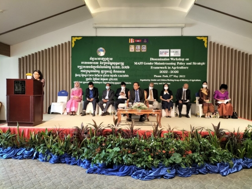 ថ្ងៃអង្គារ ២រោច ខែពិសាខ ឆ្នាំខាល ចត្វាស័ក ព.ស ២៥៦៦ ត្រូវនឹង ថ្ងៃទី១៧ ខែឧសភា ឆ្នាំ២០២២ លោកស្រី ជ័យ ចន្នី អនុប្រធានមន្ទីរកសិកម្ម រុក្ខាប្រមាញ់ និងនេសាទ ខេត្តពោធិ៍សាត់ បានអញ្ជេីញចូលរួម សិក្ខាសាលាផ្សព្វផ្សាយ ស្តីពីគោលនយោបាយ និងយុទ្ធសាស្ត្របញ្ជ្រាបយេនឌ័រ ក្នុងវិស័យកសិកម្ម នៅសណ្ឋាគារ ហ៊ីម៉ាវារី ភ្នំពេញ រៀបចំដោយក្រុមការងារយេនឌ័រ និងកុមារ នៃក្រសួងកសិកម្ម រុក្ខាប្រមាញ់ និងនេសាទ ស្ថិតក្រោមអធិបតីភាព ឯកឧត្តម ហាស សារ៉េត រដ្ឋលេខាធិការក្រសួងកសិកម្ម រុក្ខាប្រមាញ់ និងនេសាទ ដែលមាន សមាសភាពគណ:អធិបតីក្នុងអង្គសិក្ខាសាលារួមមាន៖ ឯកឧត្តម លោកជំទាវ តំណាងក្រសួងស្ថាប័នពាក់ព័ន្ធ និងមានភ្ញៀវចូលរួម មកពី ថ្នាក់ដឹកនាំក្រសួង,អង្គភាពថ្នាក់កណ្តាល,អង្គភាពថ្នាក់រាជធានីខេត្តទាំង២៥ ខេត្ត /ក្រុង ,អង្គការដៃគូរអភិវឌ្ឃន៍នានា សរុបចំនួន ៧២ នាក់ ស្រី ៤១ នាក់ ។នៅចុងបញ្ចប់កម្មវិធីគណ:អធិបតីបានប្រគល់សៀវភៅ គោលនយោបាយ និងក្របខ័ណ្ឌយុទ្ធសាស្ត្រ បញ្រាបយេនឌ័រក្នុងវិស័យកសិកម្ម ឆ្នាំ ២០២២-២០២៦ ជូនដល់ភ្ញៀវដែលបានចូលរួមនៅក្នុងអង្គសិក្ខាសាលាទាំងអស់ ចំនួន ០២ ក្បាល ។