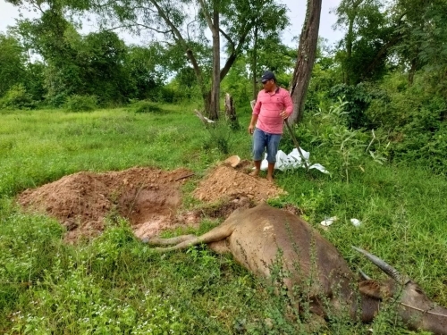 ថ្ងៃសុក្រ ៥រោច ខែពិសាខ ឆ្នាំខាល ចត្វាស័ក ព.ស ២៥៦៦ ត្រូវនឹង ថ្ងៃទី២០ ខែឧសភា ឆ្នាំ២០២២ លោក ផាត់ សារុន ប្រធានការិយាល័យផលិតកម្ម និងបសុព្យាបាល បានបញ្ជាឱ្យមន្រ្តីជំនាញចាប់រឺម៉កដឹកក្របីងាប់០១ក្បាលតាមផ្លូវជាតិលេខ០៥ត្រង់ចំណុចស្ថានីយ៍ប្រេងឥន្ធន: ភូមិអណ្តូងក្រសាំង ឃុំស្នាមព្រះ ស្រុកបាកាន ទិសដៅពីលិច ទៅកើត របស់ឈ្មោះ ផាន់ ធឿន ភេទ ប្រុស អាយុ ៤៦ឆ្នាំ ទីលំនៅបច្វុប្បន្នភូមិ ឈើទាលខ្ពស់ ស្រុកក្រគរ ។ ក្របីងាប់នេះនាំចេញពីឃុំរំលេច ស្រុកបាកាន ដើម្បីយកទៅវះកាត់លក់សាច់នៅស្រុកក្រគរ ។ ឈ្មោះ ផាន់ ធឿន នេះជាឈ្មួញទិញ លក់គោ ក្របី និងមានប្រពន្ធទីពីរជាអាជីវករមានអាជីវកម្មពិឃាតសត្វគោក្របី នៅភូមិថ្គោលធំ ឃុំ អន្សាចំបក់ ស្រុកក្រគរ។ ដោយមានការអនុញ្ញាតពីលោកប្រធានមន្ទីរ បានដកហូតក្របីងាប់០១ក្បាល (មានក្លិនស្អុយ) ដេីម្បីអនុវត្តវិធានបសុពេទ្យ (ចាក់ស្រោចថ្នាំសម្លាប់មេរោគ និងជីកកប់ដី) នៅស្ថានីយ៍កសិកម្មស្រង់ ដោយមិនមានការផាកពិន័យនោះឡើយ គឺគ្រាន់តែបានធ្វើកំណត់បទល្មើសជាក់ស្តែង ណែនាំ និងធ្វើកិច្ចសន្យាបញ្ឈប់ការយកសត្វឈឺឬងាប់ដឹកជញ្ជូនឬវះកាត់យកសាច់បរិភោគឬលក់ដូរបន្តទៀតឡើយ រួចឱ្យសាម៉ីខ្លួនធានាកប់សាកសពក្របីនេះត្រឹមត្រូវតាមបច្ចេកទេសនៃវិធានបសុពេទ្យ ។