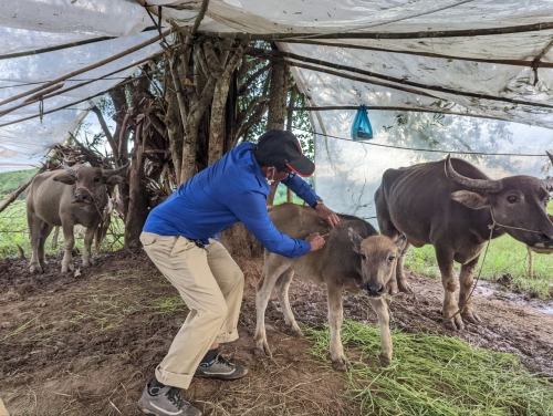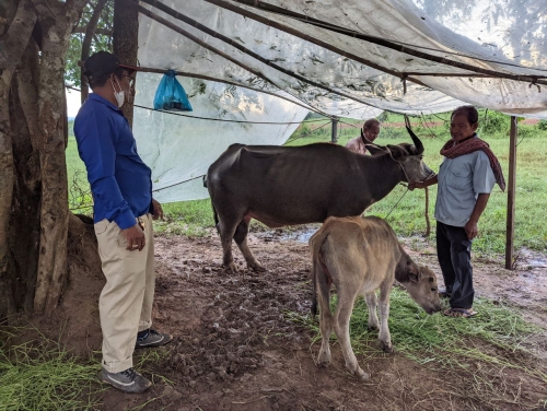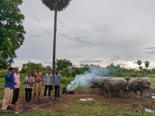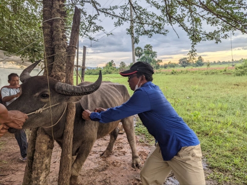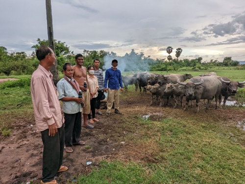 ថ្ងៃពុធ ១០រោច ខែពិសាខ ឆ្នាំខាល ចត្វាស័ក ព.ស ២៥៦៦ ត្រូវនឹង ថ្ងៃទី២៥ ខែឧសភា ឆ្នាំ២០២២ ដោយ បានទទួលដំណឹងពីក្រុមការងារចុះពង្រឹងមូលដ្ឋាន ថាមានសត្វគោក្របី របស់ប្រជាពលរដ្ឋ ឈឺ ងាប់ នៅភូមិ កំរ៉ែង ឃុំស្វាយស ស្រុកក្រគរ ខេត្តពោធិ៍សាត់ ។ ក្នុងខណ:បន្ទាន់នោះ លោក ផាត់ សារុន ប្រធានការិយាល័យផលិតកម្ម និងបសុព្យាបាល បានដឹកនាំមន្រ្តីក្រុមការងារជំនាញ ចុះដល់ទីតាំង ដើម្បី ត្រួតពិនិត្យស្ថានភាពជំងឺសត្វជាក់ស្តែង និងវិធានការទប់ស្កាត់ការរាលដាលជំងឺសត្វទាន់ពេលវេលា ។ ក្រុមការងារបានជួបជាមួយភ្នាក់ងារសុខភាពសត្វភូមិ កសិករម្ចាស់សត្វចំនួន ០៥គ្រួសារ បញ្ជាក់ថា សត្វគោ ក្របីមួយចំនួនចាប់ផ្តើមឈឺ នៅថ្ងៃទី១០ ខែ ឧសភា ឆ្នាំ២០២២ ដែលមានគោក្របីសរុបចំនួន ១៦ក្បាល មានកូនគោងាប់ ០១ក្បាល និងក្របីជំទង់ កូនងាប់ ចំនួ០៥ក្បាល ។ គោ/ក្របី បានជាសះស្បើយចំនួន០៧ក្បាល និងកំពុងឈឺជាក់ស្តែងក្របីចំនួន ៣ក្បាល ដែលមានរោគសញ្ញសង្ស័យជាសារទឹក និងមានហើម រលាកស្បែក ផ្នែកខ្លះៗ ។ បានណែនាំដល់ម្ចាស់សត្វឱ្យថែទាំសត្វ រាល់ពេលមានកម្មវិធីចុះវាក់វ៉ាក់គោ ក្របី ត្រូវតែនាំយកគោក្របីចាក់វ៉ាក់សាំងទាំងអស់ តាមដានសុខភាពសត្វជាប្រចាំ បើមានសត្វឈឺត្រូវឱ្យពេទ្យភូមិព្យាបាលជាបន្ទាន់ និងពេទ្យសត្វភូមិត្រូវរាយការណ៍ទៅពេទ្យសត្វស្រុក/ខេត្ត បន្តជាបន្ទាន់ ដើម្បីអន្តរាគមន៍ទប់ស្កាត់ជំងឺសត្វឱ្យបានទាន់ពេលវេលា ។ បន្ទាប់មកបានជួយព្យាបាល ក្របីឈឺ ០៣ក្បាល និងបានផ្តល់ស៊ឺរាំង ម្ជុល សំឡីអាល់កុល ថ្នាំព្យាលមួយចំនួនដល់ពេទ្យសត្វ សម្រាប់ជួយព្យាបាលសត្វឈឺបន្ត ។