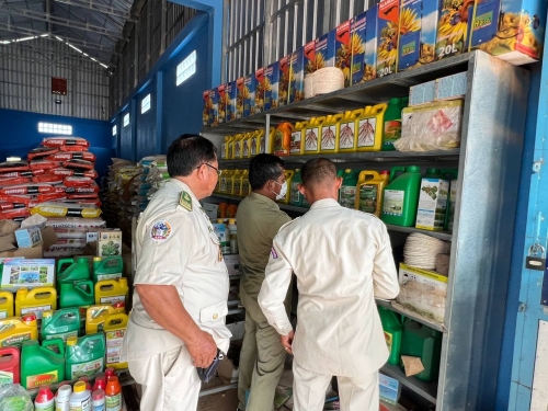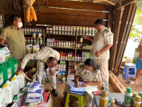 ថ្ងៃសុក្រ ១១កើត ខែជេស្ឋ ឆ្នាំខាល ចត្វាស័ក ព.ស ២៥៦៦ ត្រូវនឹង ថ្ងៃទី១០ ខែមិថុនា ឆ្នាំ២០២២ លោកឡេង ចិន្តាមុនី ប្រធានការិយាល័យនីតិកម្មកសិកម្ម បានដឹកនាំមន្រី្តចុះអធិការកិច្ចថ្នាំកសិកម្ម និងជីកសិកម្មចំនួន ៣ដេប៉ូ នៅផ្សារបត់រំដួល ឃុំផ្ទះរុង ស្រុកតាលោសែនជ័យ។ជាលទ្ធផលនៃការធ្វើអធិការកិច្ច បានឃើញថាចំនួន ១ ដេប៉ូ ហួសសុពលភាព លិខិតអនុញ្ញាតធ្វើអាជីវកម្ម និង វិញ្ញាបនប័ត្រវគ្គអប់រំសមត្ថភាពវិជ្ជាជីវ: ។ក្រុមការងារបាន ណែនាំអោយអាជីវករមកសុំលិខិតអនុញាតិលក់ដុំលក់រាយនិងដាក់ពាក្យសុំចូលរៀន នៅច្រកចេញចូលតែមួយ (បានធ្វេីកិច្ចសន្យា អាជីវករលក់ដុំ លក់រាយថ្នាំកសិកម្មនិងជីកសិកម្ម)និង ណែនាំពីវិធានការណ៍សុវត្តិភាពរបៀបតាំងលក់ថ្នាំកសិកម្ម និង ជីកសិកម្ម។