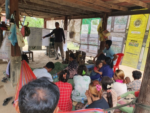 ថ្ងៃចន្ទ ៦កើត ខែអាសាឍ ឆ្នាំខាល ចត្វាស័ក ព.ស ២៥៦៦ ត្រូវនឹង ថ្ងៃទី៤ ខែកក្កដា ឆ្នាំ២០២២ នៅភូមិថ្មី ឃុំស្រែស្តុក ស្រុកកណ្តៀង ខេត្តពោធិ៍សាត់ លោក សេង សុងលី តំណាងខណ្ឌរដ្ឋបាលជលផល និង លោក ម៉ែន វណ្ណៈ មន្រ្តីគាំទ្រកម្មវិធី ASPIRE ថ្នាក់ខេត្ត បានចុះសហការរៀបចំការពង្រឹងការគ្រប់គ្រងបណ្តុំអាជីវកម្មចិញ្ចឹមត្រី និងកង្កែប ដោយមានសមាជិកបណ្តុំអាជីវកម្មបានចូលរួម៣០ នាក់។