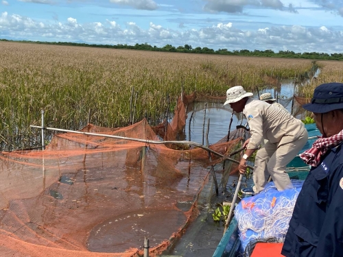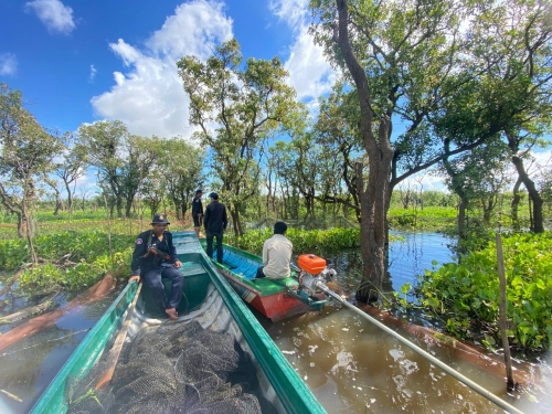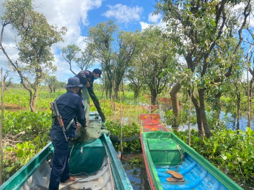 ថ្ងៃពុធ ៨កើត ខែអាសាឍ ឆ្នាំខាល ចត្វាស័ក ព.ស ២៥៦៦ ត្រូវនឹង ថ្ងៃទី៦ ខែកក្កដា ឆ្នាំ២០២២ កម្លាំងសមត្ថកិច្ចជលផលផ្នែករដ្ឋបាលជលផលក្រគរនៃខណ្ឌរដ្ឋបាលជលផលពោធិសាត់ ដឹកនាំដោយ លោក ភុន សុវណ្ណា និងមានការចូលរួមពីលោកនាយរងសង្កាត់រដ្ឋបាលជលផលកណ្ដៀង សហការជាមួយកម្លាំងរាជអាវុធខេត្តពោធិ៍សាត់ បានចេញប្រតិបត្តិការបង្ក្រាបបទល្មើសនេសាទនៅចំណុចពាមព្រែកកំពង់គុជ ភូមិព្រែក ឃុំរាំងទិល ស្រុកកណ្ដៀង បាន០១ករណី វត្ថុតាងរុះរើបំផ្លាញចោលមាន :