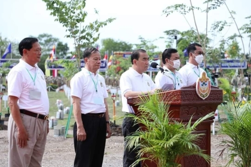 ឯកឧត្តម វេង សាខុន រដ្ឋមន្រ្តីក្រសួងកសិកម្ម រុក្ខាប្រមាញ់ និងនេសាទ ក្នុងនាមថ្នាក់ដឹកនាំក្រសួង មន្រ្តីរាជការ និងខ្លួនលោកផ្ទាល់ បានសម្តែងនូវគារវកិច្ច គោរពថ្លែងអំណរគុណយ៉ាងជ្រាលជ្រៅបំផុត ជូនចំពោះព្រះរាជវត្តមានដ៏ខ្ពង់ខ្ពស់បំផុតព្រះករុណាព្រះបាទសម្តេចព្រះបរមនាថ នរោត្តម សីហមុនី ព្រះមហាក្សត្រនៃព្រះរាជាណាចក្រកម្ពុជាជាទីគោរពសក្ការ:ដ៏ខ្ពង់ខ្ពស់បំផុតនៃយើង ដែលបានផ្តល់មហាកិត្តិយសយាងអញ្ជើញជាព្រះរាជាធិបតីភាពដ៏ខ្ពង់ខ្ពស់បំផុតក្នុងពិធីដ៏មានអត្ថន័យវិសេសវិសាលជាប្រវត្តិសាស្រ្តក្នុងខេត្តបាត់ដំបងនាពេលនេះ។ ឯកឧត្តមរដ្ឋមន្ត្រី បានថ្លែងអំណរគុណយ៉ាងជ្រាលជ្រៅជូនចំពោះសម្តេចប្រធានព្រឹទ្ធសភា សម្តេចប្រធានរដ្ឋសភា សម្តេចក្រឡាហោម ឯកឧត្តមឧបនាយករដ្ឋមន្រ្តី ឯកឧត្តមសមាជិករាជរដ្ឋាភិបាល សមាជិករដ្ឋសភា ព្រឹទ្ធសភា ឯកឧត្តមឯកអគ្គរាជទូត ឯកអគ្គរដ្ឋទូត ដែលបានផ្តល់កិត្តិយសអញ្ជើញចូលរួម និងបន្តថ្លែងអំណរគុណជូនចំពោះឯកឧត្តមអភិបាលនៃគណ:អភិបាលខេត្ត ឯកឧត្តមថ្នាក់ដឹកនាំ និងមន្រ្តីជំនាញនៃរដ្ឋបាលព្រៃឈើ ដែលបានសហការគ្នាយ៉ាងល្អប្រសើរ រៀបចំប្រារព្វពិធីនេះ សម្រេចទទួលបានជោគជ័យគួរជាទីមោទននាព្រឹកនេះ។