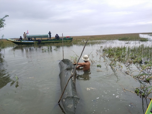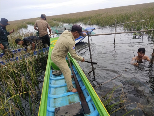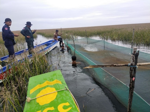 ថ្ងៃពុធ ១៥កើត ខែអាសាឍ ឆ្នាំខាល ចត្វាស័ក ព.ស ២៥៦៦ ត្រូវនឹង ថ្ងៃទី១៣ ខែកក្កដា ឆ្នាំ២០២២ សង្កាត់រដ្ឋបាលជលផលកណ្ដៀង ដឹកនាំដោយលោក ហម ណារិន នាយរងសង្កាត់ រួមមាន ប៉ូលីសស្រុក បានចូលរួមសហការជាមួយ ក្រុមការងារថ្នាក់ជាតិបង្ក្រាបបទល្មើសជលផលដឹកនាំដោយ ឧត្តមសេនីយ៍ត្រី ព្រំ ចាន់ណា តំណាងអគ្គស្នងការនគរបាល ជាតិ និងអនុសេនីយ៍ត្រី ឡេង សីហា តំណាង កងរាជអាវុធហត្ថលើផ្ទៃប្រទេស និង កម្លាំងអធិការដ្ឋានរដ្ឋបាលជលផលខាងត្បូងបឹងទន្លេសាប ដែលមានកម្លាំងសរុបចំនួន ១៤នាក់ និងមធ្យោបាយកាណូតចំនួន ៣គ្រឿង បានចុះរុះរើរបាំងស្បៃមុង ចាប់ពី ក្រឡុកអន្ទង់ដេក ដល់មុខព្រែកសាឡិត ភូមិរាំងទិល ឃុំរាំងទិល ស្រុកកណ្ដៀង ខេត្តពោធិ៍សាត់។