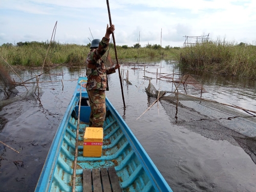 ថ្ងៃពុធ ១៤រោច ខែអាសាឍ ឆ្នាំខាល ចត្វាស័ក ព.ស ២៥៦៦ ត្រូវនឹង ថ្ងៃទី២៧ ខែកក្កដា ឆ្នាំ២០២២ កម្លាំងសង្កាត់រដ្ឋបាលជលផលបាកាន ដឹកនាំដោយលោក លឹម សុក្រឹត នាយសង្កាត់ សហការជាមួយ និងយោធាខេត្ត កម្លាំងសរុបចំនួន ០៦នាក់ និងកាណូតចំនួន ០១គ្រឿង បានចុះប្រតិបត្តិការបង្រ្កាបបទល្មើសជលផល នៅក្នុងកន្លែងអភិរក្សជលផលលេខ០២ ភូមិព្រែកក្រ ឃុំមេទឹក ស្រុកបាកាន ខេត្តពោធីសាត់ បាន០១ករណី វត្ថុតាងរួមមាន