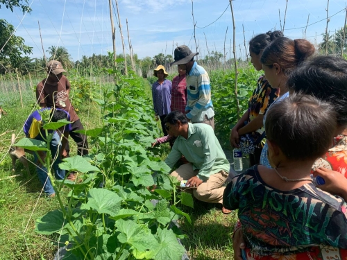 ថ្ងៃព្រហស្បតិ៍ ១៥រោច ខែអាសាឍ ឆ្នាំខាល ចត្វាស័ក ព.ស ២៥៦៦ ត្រូវនឹង ថ្ងៃទី២៨ ខែកក្កដា ឆ្នាំ២០២២ ក្រុមការងារអនុវត្តអនុកម្មវិធីថ្នាក់ស្រុកដឹកនាំដោយលោក ផាត់ វុទ្ធី និងលោក ទេព សិទ្ធាន ភ្នាក់ងារផ្សព្វផ្សាយឃុំ ដោយមានការណែនាំបច្ចេកទេសពីមន្រ្តីបច្ចេកទេសថ្នាក់ខេត្ត នៃមន្ទីរកសិកម្ម រុក្ខាប្រមាញ់ និងនេសាទខេត្ត បានចុះសម្របសម្រួល ពិនិត្យ និងវាយតម្លៃកសិផលកសិកម្ម ដើម្បីបញ្ជាក់ពីផលិតផលសុវត្ថិភាពនៅភូមិបាក់ចិញ្ចៀន ឃុំបាក់ចិញ្ចៀន ស្រុកភ្នំក្រវាញ ។ យោងតាមការកំណត់លក្ខណៈវិនិច្ឆ័យ និង ការចុះពិនិត្យជាក់ស្តែងដល់ចំការកសិករឃើញថា ការដាំដុះរបស់កសិករក្នុងនោះភាគច្រើនបានអនុវត្តតាមការណែនាំបច្ចេកទេស ។ ស្របជាមួយនេះផងដែរ ក្រុមហ៊ុនបណ្តាញកសិករ ក៏បានណែនាំសមាជិកបណ្តុំអាជីវកម្ម ឱ្យផលិតដំណាំដែលមានតម្រូវការទីផ្សារ រួមមាន ប៉េងបោះឈើរី ប៉េងបោះហាវៃ ខាត់ណាដើម(ពណ៍ស្វាយ និង បៃតង) ស្ពៃក្រញាញ់ សណ្តែកគួរ ត្រសក់ ដែលក្រុមហ៊ុននិងរៀបចំការបញ្ជាទិញតាមរយៈប្រធានបណ្តុំអាជីវកម្ម ដែលត្រូវចុះប្រមូលផលិតផល និងរៀបចំវេចខ្ចប់នៅកន្លែងប្រមូលផ្តុំដើម្បីក្រុមហ៊ុនចុះមកប្រមូលតាមកាលវិភាគកំណត់ដែលបានឯកភាពគ្នា។