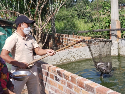 ថ្ងៃព្រហស្បតិ៍ ១៥រោច ខែអាសាឍ ឆ្នាំខាល ចត្វាស័ក ព.ស ២៥៦៦ ត្រូវនឹង ថ្ងៃទី២៨ ខែកក្កដា ឆ្នាំ២០២២ ក្រុមការងារថា្នក់ខេត្តដឹកនាំដោយលោក ហៃ ធូរ៉ា អនុប្រធានមន្ទីរកសិកម្ម រុក្ខាប្រមាញ់ និងនេសាទ ខេត្តពោធិ៍សាត់ ទទួលបន្ទុកកម្មវិធី បានដឹកនាំការងារចុះត្រួតពិនិត្យការអនុវត្តគម្រោងរបស់អង្គការ EPDO លើគម្រោងគាំទ្រវារីវប្បកម្ម នៃភាពជាដៃគូរវាងរដ្ឋនិងវិស័យឯកជន (PPP) ដោយមានការចូលរួមពីលោក ហ៊ន់ សុវណ្ណ មន្រ្តីត្រួតពិនិត្យនិវាយតម្លៃ នៃកម្មវិធី លោក ស៊ុន ផល្លា មន្រ្តីអង្គការ EPDO និងទីប្រឹក្សាគ្រប់គ្រងកម្មវិធី ASPIRE ប្រចាំខេត្តបានចូលរួម។ សង្ខេតឃើញថា ការអនុវត្តគម្រោងវារីវប្បកម្ម ដែលអនុវត្តដោយអង្គការ EPDO មានការរីកចម្រើនគួរឱ្យកត់សំគាល់ ក្នុងនោះកសិករជាសមាជិកបណ្តុំអាជីវកម្ម ត្រី/កង្កែប មានចំនួន ៦៥គ្រួសារ /ស្រ្តី ៤៧គ្រួសារ បានធ្វើការចិញ្ចឹមត្រីនិងកង្កែបជាបន្តបន្ទាប់ ក្នុងការផលិតលក់ក្នុងតំបន់។ យោងតាមការជួបជាមួួយកសិករ អ៊ឺម សារ៉ន ប្រធានបណ្តុំអាជីវកម្ម បានឱ្យដឹងថា គាត់បានចូលរួមជាបណ្តុំអាជីវកម្មក្នុងកម្មវិធីក្នុងឆ្នាំ២០២១ ដែលគាត់បានធ្វើការចិញ្ចឹមត្រីអណ្តែងរឹង ចំនួន៣លើក បានជោគជ័យ និងលក់រកប្រាក់ចំណូលជាមធ្យមបាន ៨០០ដុល្លារពីការចិញ្ចឹមត្រីចំនួន៤អាង ដែលមានទំហំ១អាង ៣មx២ម ហើយគាត់ចិញ្ចឹមបន្តទៀត ។ ចំពោះសមាជិកក្រុមក៏បានពង្រីកការចិញ្ចឹមបន្ថែមទៀតក្នុងរដូវកាលនេះ។