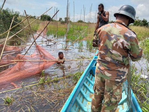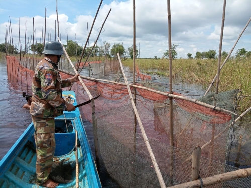 ថ្ងៃព្រហស្បតិ៍ ១៥រោច ខែអាសាឍ ឆ្នាំខាល ចត្វាស័ក ព.ស ២៥៦៦ ត្រូវនឹង ថ្ងៃទី២៨ ខែកក្កដា ឆ្នាំ២០២២ កម្លាំងសង្កាត់រដ្ឋបាលជលផលបាកាន ដឹកនាំដោយលោក លឹម សុក្រឹត នាយសង្កាត់ សហការជាមួយ និងយោធាខេត្ត កម្លាំងសរុបចំនួន ០៥នាក់ និងកាណូតចំនួន ០១គ្រឿង បានចុះប្រតិបត្តិការបង្រ្កាបបទល្មើសជលផល នៅចំនុចប្រឡាយខ្សាច់ និងរាំងទ្រេត ស្ថិតនៅ ភូមិដីរនាត ឃុំមេទឹក ស្រុកបាកាន ខេត្តពោធិ៍សាត់ បាន០១ករណី បំផ្លាញចោល វត្ថុតាងរួមមាន
