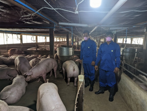 ថ្ងៃព្រហស្បតិ៍ ១៥រោច ខែអាសាឍ ឆ្នាំខាល ចត្វាស័ក ព.ស ២៥៦៦ ត្រូវនឹង ថ្ងៃទី២៨ ខែកក្កដា ឆ្នាំ២០២២ លោក ផាត់ សារុន ប្រធានការិយាល័យផលិតកម្ម និងបសុព្យាបាល និងលោក សំ ស៊ី មន្ត្រីការិយាល័យ បានចុះត្រួតពិនិត្យសុខភាព និងការចិញ្ចឹមជ្រូកសាច់នៅកសិដ្ឋានមួយកន្លែង ដែលមានម្ចាស់ ឈ្មោះ សាយ សំអុល មានទីតាំងភូមិ អង្គ្រង ឃុំ សំរោង ស្រុក ភ្នំក្រវាញ ខេត្តពោធិ៍សាត់ ។ ផលិតកម្មជ្រូកសាច់របស់