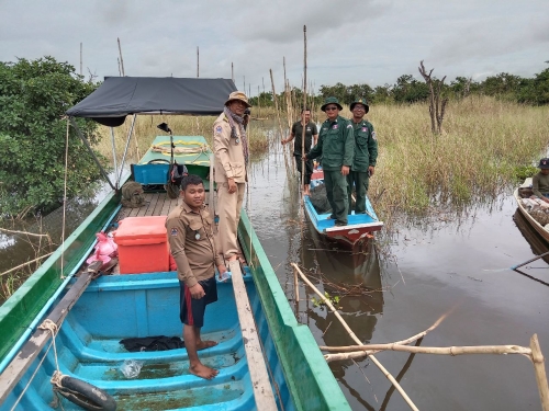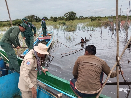 ថ្ងៃអង្គារ ៥កើត ខែស្រាពណ៍ ឆ្នាំខាល ចត្វាស័ក ព.ស ២៥៦៦ ត្រូវនឹង ថ្ងៃទី២ ខែសីហា ឆ្នាំ២០២២ អនុគណៈកម្មការបង្ក្រាបបទល្មើសជលផលប្រចាំស្រុកបាកាន ដឹកនាំដោយលោក ថៃ សីលាលីតា នាយរងខណ្ឌរដ្ឋបាលជលផលពោធិ៍សាត់ ដោយមានការចូលរួមពីកម្លាំងសង្កាត់រដ្ឋបាលជលផលបាកាន សហការជាមួយ លោក ឈឹម ស៊ីថា នាយរងការិយាល័យប្រឆាំងបទល្មើសសេដ្ឋកិច្ចខេត្ត កម្លាំងសរុបចំនួន ០៨នាក់ និងកាណូតចំនួន ០២គ្រឿង បានចុះប្រតិបត្តិការបង្រ្កាបបទល្មើសជលផល នៅចំនុចក្រឡុកតាព្រងិល រាំងទ្រេត និងចុងព្រែកទឹកពុះ ស្ថិតនៅភូមិដីរនាត ឃុំមេទឹក ស្រុកបាកាន ខេត្តពោធិ៍សាត់ បាន០១ករណី បំផ្លាញចោល វត្ថុតាងរួមមាន