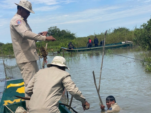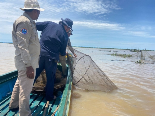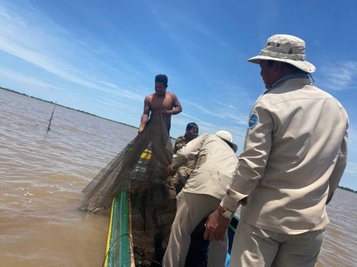 ថ្ងៃពុធ ១២រោច ខែស្រាពណ៍ ឆ្នាំខាល ចត្វាស័ក ព.ស ២៥៦៦ ត្រូវនឹង ថ្ងៃទី២៤ ខែសីហា ឆ្នាំ២០២២ កម្លាំងសមត្ថកិច្ចជលផលផ្នែករដ្ឋបាលជលផលក្រគរ នៃខណ្ឌរដ្ឋបាលជលផលពោធិ៍សាត់ដឹកនាំដោយលោកភុន សុវណ្ណា រួមមាននាយរងសង្កាត់រដ្ឋបាលជលផលក្រគរ កណ្តៀង សហការជាមួយក្រុមការងារថ្នាក់ជាតិបង្ក្រាបបទល្មើសជលផលប្រចាំការបឹងទន្លេសាបមានទីតាំនៅកន្លែងអភិរក្សជលផលជ្រោយស្តីដឹកនាំដោយ ឧត្តមសេនីយ៍ទោ ម៉ែន សុីប៊ន នាយសេនាធិការរងរាជអាវុធហត្ថលើផ្ទៃប្រទេស និងឧត្តមសេនីយ៍ទោ ខ្វាន់ ប៊ុនធឿន ដំណាងអគ្គស្នងការនគរបាលជាតិ កម្លាំងអធិការដ្ឋានរដ្ឋបាលជលផលខាងត្បូងបឹងទន្លេសាប កងរាជអាវុធហត្ថខេត្ត កម្លាំងនគរបាលប្រឆាំងបទល្មើសសេដ្ឋកិច្ចខេត្ត និងសហគមន៍នេសាទសរុប ២៧នាក់កាណូត ០៦គ្រឿង បានចេញប្រតិបត្តិការបង្ក្រាបបទល្មើសនេសាទពីចំណុច ភូមិអាកល់ ឃុំអូរសណ្ដាន់ ស្រុកក្រគរ ដល់ចំណុចតាគល់ ភូមិព្រែកត្របែក ឃុំកញ្ជរស្រុកកណ្តៀង ខេត្តពោធិ៍សាត់ ។ ជាលទ្ធផលបាន០១ករណី វត្ថុតាងរុះរើបំផ្លាញចោលមាន៖