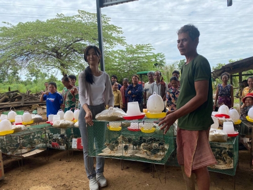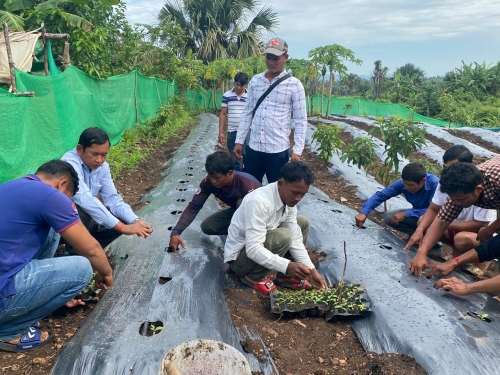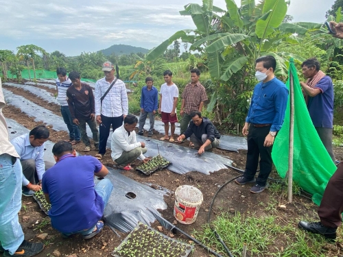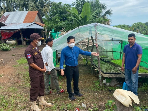 ថ្ងៃពុធ ១២រោច ខែស្រាពណ៍ ឆ្នាំខាល ចត្វាស័ក ព.ស ២៥៦៦ ត្រូវនឹង ថ្ងៃទី២៤ ខែសីហា ឆ្នាំ២០២២ ក្រុមការងារមន្ទីរសិកម្មរុក្ខាប្រមាញ់ និងនេសាទ ខេត្តពោធិ៍សាត់ ដឹកនាំដោយលោក ឡាយ វិសិដ្ឋ ប្រធានមន្ទីរ និងមានការចូលរួមពីលោក ហៃ ធូរ៉ាអនុប្រធានមន្ទីរ លោកផាត់ សារុន ប្រធាន និងមន្ត្រីការិយាល័យផលិតកម្ម និងបសុព្យាបាលខេត្ត លោក មាស សេត ប្រធាននិងមន្ត្រីការិយាល័យក្សេត្រសាស្ត្រ បានរៀបចំពិធីចែកកូនមាន់ ចំនួន៦០០ក្បាល ស្នូកទឹកចំណី ៦០ និងចំណីកូនមាន់១៥០គីឡូក្រាម ដល់កសិករដែលបានចូលរួមវគ្គបណ្តុះបណ្តាលបច្ចេកទេសចិញ្ចឹមមាន់ធន់នឹងការប្រែប្រួលអាកាសធាតុ និងចុះពិនិត្យណែនាំ កសិករលើការដាំដុះដំណាំបន្លែ (ត្រប់ ម្ទេស និងស្ពៃ) និងធ្វើបង្ហាញជាក់ស្តែងលើការដាំកូនដំណាំ ដោយគ្របផ្ទាស្ទិច ដែលសហការក្រោមគម្រោងសមាហរណកម្ម បោសសំអាតដោះមីន និងជួយជនរងគ្រោះដោយសារគ្រាប់យុទ្ធភណ្ឌមិនទាន់ផ្ទុះ (CMAC) ដែលគាំទ្រថវិកាដោយរាជរដ្ឋាភិបាលជប៉ុន តាមរយៈភ្នាក់ងារ Crown Agent-Japan ។
