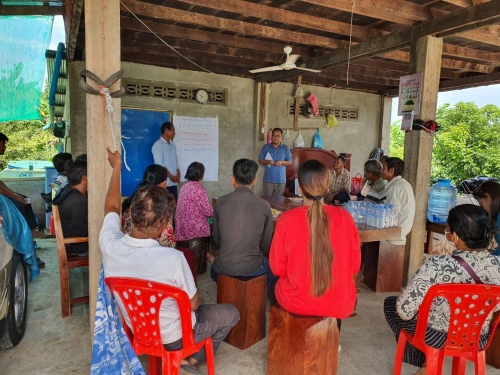 ថ្ងៃព្រហស្បតិ៍ ១៣រោច ខែស្រាពណ៍ ឆ្នាំខាល ចត្វាស័ក ព.ស ២៥៦៦ ត្រូវនឹង ថ្ងៃទី២៥ ខែសីហា ឆ្នាំ២០២២ លោក សេង សុងលី តំណាងខណ្ឌរដ្ឋបាលជលផល រួមជាមួយលោក ម៉ែន វណ្ណៈ អ្នកសម្របសម្រួលថ្នាក់ខេត្ត បានចុះសម្របសម្រួលកិច្ចប្រជុំផ្សព្វផ្សាយការអនុវត្តវារីវប្បកម្ម ល្អ និងបច្ចេកទេសក្រោយពេលប្រមូលផល ជាមួយបណ្តុំអាជីកម្ម ចិញ្ចឹមត្រីអណ្តែងរបស់កម្មវិធី ASPIRE នៅភូមិព្រែក១ ឃុំសំរោង ស្រុកភ្នំក្រវាញ ខេត្តពោធិ៍សាត់ ដោយមានប្រធាន អនុប្រធានបណ្តុំ និងសមាជិកសរុប ២៨នាក់ ។ ជាលទ្ធផលបានរកឃើញ នូវចំណុចល្អច្រើន ដូចជា: