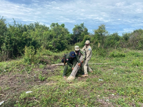 ថ្ងៃចន្ទ ១០កើត ខែភទ្របទ ឆ្នាំខាល ចត្វាស័ក ព.ស ២៥៦៦ ត្រូវនឹង ថ្ងៃទី៥ ខែកញ្ញា ឆ្នាំ២០២២ ខណ្ឌរដ្ឋបាលជលផលនៃមន្ទីរកសិកម្ម រុក្ខាប្រមាញ់ និងនេសាទ ខេត្តពោធិ៍សាត់ លោក ភុន សុវណ្ណា នាយផ្នែកក្រគរ រួមមាន លោកនាយសង្កាត់កំពង់លួង សហការជាមួយ ក្រុមការងារថ្នាក់ជាតិ បង្ក្រាបបទល្មើសជលផលប្រចាំការ នៅបឹងទន្លេសាបមានទីតាំងនៅកន្លែងអភិរក្សជលផលជ្រោយស្ដី ដឹកនាំដោយលោក វរសេនីយ៍ឯក គុជ សុភាព តំណាងអគ្គស្នងការនគរបាលជាតិ លោក ខាត់ ពុយ អភិបាលរងស្រុកក្រគរ រួមមាន កម្លាំងអធិការដ្ឋានរដ្ឋបាលជលផលខាងត្បូងបឹងទន្លេសាប កងរាជអាវុធហត្ថខេត្ដ-ស្រុកក្រគរ បរិស្ថានស្រុកក្រគរ នាយប៉ុស្ដិ៍នគរបាលកំពង់លួង អាជ្ញាធរឃុំកំពង់លួង បានចុះពិនិត្យទីតាំងជាក់ស្ដែង ដែលជនសង្ស័យ លួចហ៊ុមព័ទ្ធកាន់កាប់ដីព្រៃលិចទឹក ក្នុងដីតំបន់៣ ស្ថិតនៅភូមិទី៤ ឃុំកំពង់លួង ស្រុកក្រគរ លើផ្ទៃដីទំហំ ២ហិចតា និងបានរុះរើបង្គោលរបងឈើចំនួន ១៥០ដើម ។ ចំពោះជនសង្ស័យ ដែលបានធ្វើការ ហ៊ុមព័ទ្ធកាន់កាប់ដីព្រៃលិចទឹកនេះ ក្រុមការងារបានកំណត់មុខសញ្ញារួចហើយ ដើម្បីធ្វើកំនត់ហេតុបញ្ចូនទៅតុលាការ តាមនិតិច្បាប់ស្តីពីជលផល ។
