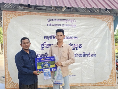 ថ្ងៃចន្ទ ៦រោច ខែកត្តិក ឆ្នាំខាល ចត្វាស័ក ព.ស ២៥៦៦ ត្រូវនឹង ថ្ងៃទី១៤ ខែវិច្ឆិកា ឆ្នាំ២០២២ លោក កែវ ចន្ទ័កែវ អនុប្រធានមន្ទីរកសិកម្ម រុក្ខាប្រមាញ់ និងនេសាទ ខេត្តពោធិ៍សាត់ បានអញ្ជេីញចូលរួម សហការជាមួយក្រុមហ៊ុនយូធី គ្រុប ចែកអំណោយថ្នាំស្មៅ ដល់កសិករដែលរងគ្រោះដោយទឹកជំនន់កន្លងមក នៅភូមិកំប៉ាង ឃុំស្វាយដូនកែវ ស្រុកបាកាន ខេត្តពោធិ៍សាត់ ដែកមានកសិករចូលរួមសរុប ៨២នាក់ ដោយក្នុងម្នាក់ៗ ទទួលបាន ថ្នាំកម្ចាត់ស្មៅ១ឈុត មាន២ដប និងប្រតិទិន១ ។
