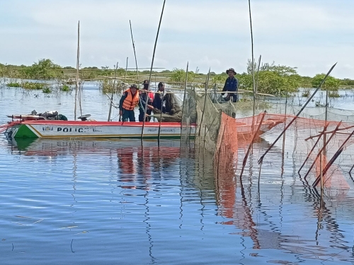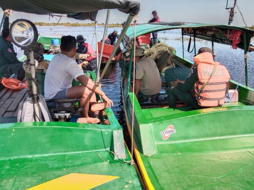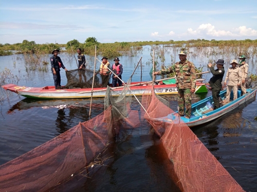ថ្ងៃសុក្រ ៣រោច ខែកត្តិក ឆ្នាំខាល ចត្វាស័ក ព.ស ២៥៦៦ ត្រូវនឹងថ្ងៃទី ១១ វិច្ឆិកា ឆ្នាំ២០២២ កម្លាំងផ្នែករដ្ឋបាលជលផលរាំងទិល សង្កាត់រដ្ឋបាលជលផលបាកាន សហការជាមួយក្រុមការងារថ្នាក់ជាតិ បង្ក្រាបបទល្មើសជលផលប្រចាំការនៅបឹងទន្លេសាបមានទីតាំងនៅកន្លែងអភិរក្សជលផលជ្រោយស្ដី ដឹកនាំដោយ លោក វ.ទោ មុំ សុវណ្ណ តំណាងកងរាជអាវុធហត្ថលើផ្ទៃប្រទេស លោក អនុសេនីយ៍ឯក ជា ធួក តំណាងអគ្គស្នងការនគរបាលជាតិ កម្លាំងអធិការដ្ឋានរដ្ឋបាលជលផលខាងត្បូងបឹងទន្លេសាប កងរាជអាវុធហត្ថខេត្ដ-ស្រុកបាកាន នគរបាលប្រឆាំងបទល្មើសសេដ្ឋកិច្ចខេត្ត ប៉ុស្ត៍នគរបាលមេទឹក បរិស្ថាន យោធាខេត្ត ដែលមានកម្លាំងសរុបចំនួន ២៧នាក់ និងកាណូតចំនួន ០៦គ្រឿង បានចុះល្បាត និងបង្ក្រាបបទល្មើសនេសាទ ចាប់ពីក្អមសំណរ មកដល់ចំនុចព្រែកដីរនាត បាន ០១ករណី បំផ្លាញចោល វត្ថុតាងរួមមាន