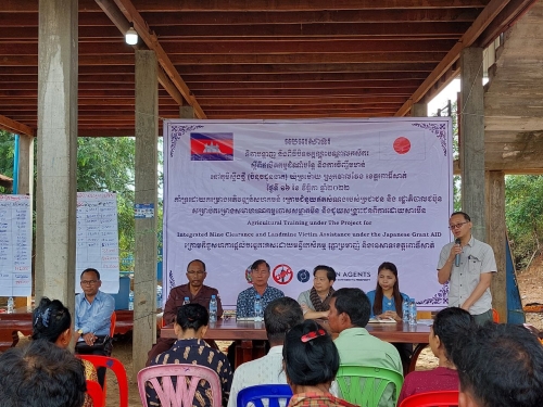 ថ្ងៃពុធ ៨រោច ខែកត្តិក ឆ្នាំខាល ចត្វាស័ក ព.ស ២៥៦៦ ត្រូវនឹង ថ្ងៃទី១៦ ខែវិច្ឆិកា ឆ្នាំ២០២២ មន្ទីរកសិកម្ម រុក្ខាប្រមាញ់ និងនេសាទ ខេត្តពោធិ៍សាត់ សហការជាមួយ គម្រោងអភិវឌ្ឍន៍សហគមន៍ ក្រោមជំនួយឥតសំណង របស់ប្រជាជន និងរាជរដ្ឋាភិបាលជប៉ុន សម្រាប់គម្រោងសមាហរណកម្ម បោសសំអាតមីន និងសង្គ្រោះជនពិការដោយសារមី បានប្រារពពិធីបិទវគ្គបណ្តុះបណ្តាល និងការធ្វើទិវាបង្ហាញ ការដាំបន្លែ និងការចិញ្ចឹមមាន់ នៅចំនុចដូននាគ ភូមិស្ទឹងថ្មី ឃុំប្រម៉ោយ ស្រុកវាលវែង អញ្ជើញចូលរួមជាគណ:អធិបតីមាន៖
