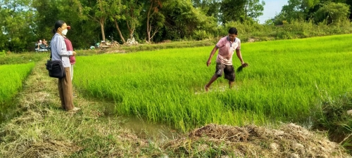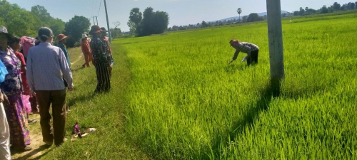 ថ្ងៃចន្ទ ៤រោច ខែមិគសិរ ឆ្នាំខាល ចត្វាស័ក ព.ស ២៥៦៦ ត្រូវនឹង ថ្ងៃទី១២ ខែធ្នូ ឆ្នាំ២០២២ មន្រ្តីការិយាល័យក្រេត្រសាស្រ្ត និងផលិតភាពកសិកម្ម សហការជាមួយមន្រ្តីការិយាល័យកសិកម្មក្រុងពោធិ៍សាត់ ចុះពិនិត្យស្រែបង្ហាញ និងបណ្តុះបណ្តាលបច្ចេកទេសផលិតកម្មដំណាំស្រូវ ស្តីពី