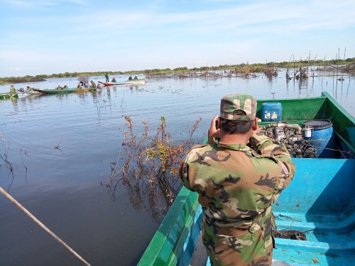 ថ្ងៃព្រហស្បតិ៍ ១៤រោច ខែមិគសិរ ឆ្នាំខាល ចត្វាស័ក ព.ស ២៥៦៦ ត្រូវនឹង ថ្ងៃទី២២ ខែធ្នូ ឆ្នាំ២០២២ កម្លាំងផ្នែករដ្ឋបាលជលផលរាំងទិល សង្កាត់រដ្ឋបាលជលផលបាកាន ដឹកនាំដោយ លោក លឹម សុក្រឹត នាយសង្កាត់ សហការជាមួយក្រុមការងារថ្នាក់ជាតិ បង្ក្រាបបទល្មើសជលផលប្រចាំការនៅកន្លែងអភិរក្សជលផលជ្រោយស្ដី ដឹកនាំដោយ លោក វ.ទោ ជា សោភ័ណ្ឌ តំណាងកងរាជអាវុធហត្ថលើផ្ទៃប្រទេស លោក វរសេនីយ៍ទោ ច័ន្ទ វិសុទ្ធ តំណាងអគ្គស្នងការនគរបាលជាតិ លោក ឈិន តួ នាយអធិការរដ្ឋបាលជលផលខាងត្បូងបឹងទន្លេសាបស្តីទី កងរាជអាវុធហត្ថស្រុកបាកាន នគរបាលប្រឆាំងបទល្មើសសេដ្ឋកិច្ចខេត្ត បរិស្ថាន យោធភូមិភាគ៥ និងយោធាខេត្ត ដែលមានកម្លាំងសរុបចំនួន ៣៨នាក់ និងកាណូតចំនួន ០៧គ្រឿង បានចុះល្បាត និងបង្ក្រាបបទល្មើសនេសាទ ចាប់ពីព្រែកក្បាលតោលមកដល់ព្រែកដីរនាតបាន ០១ករណី បំផ្លាញចោល វត្ថុតាងរួមមាន