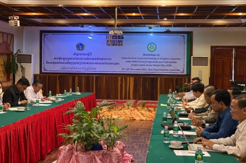 ថ្ងៃសុក្រ ១កើត ខែបុស្ស ឆ្នាំខាល ចត្វាស័ក ព.ស ២៥៦៦ ត្រូវនឹង ថ្ងៃទី២៣ ខែធ្នូ ឆ្នាំ២០២២ លោក ហ៊ន់ សុវណ្ណ ប្រធានការិយាល័យផ្សព្វផ្សាយកសិកម្ម បានអញ្ជេីញចូលរួមសិក្ខាសាលា ស្តីពីការធ្វើបច្ចុប្បន្នភាពផែនការមេវិស័យកសិកម្មឆ្នាំ២០៣០ និងលទ្ធផលនៃការសិក្សាស្រាវជ្រាវគោលនយោបាយដែលសម្រេច។ ក្រោមអធិបតីភាពលោកជំទាវ ហ៊ូ សុពណ៌ អនុរដ្ឋលេខាធិការក្រសួងកសិកម្ម រុក្ខាប្រមាញ់ និងនេសាទ និងលោក ម៉ក់ មូនី ប្រធាននាយកដ្ឋានផែនការស្ថិតិ នៃក្រសួងកសិកម្ម រុក្ខាប្រមាញ់ និងនេសាទ ។ ព្រមទាំងមានការចូលរួមពី ថ្នាក់ដឹកនាំក្រសួង ប្រធាន អនុប្រធានមន្ទីរ និងក្រុមការងារគម្រោងអភិវឌ្ឍន៍ក្នុងវិស័យកសិកម្ម ។