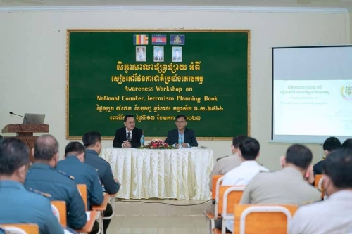 លោក ហ៊ន់ សុវណ្ណ អនុប្រធានមន្ទីរ បានចូលរួមសិក្ខាសាលាផ្សព្វផ្សាយស្តីពី សៀវភៅផែនការជាតិប្រឆាំងភារវកម្មនៅសាខាកាកបាទក្រហមខេត្តពោធិ៍សាត់ ក្រោមអធិបតីភាព ឯកឧត្តម ពៅ ពិសិដ្ឋ អភិបាលរង នៃគណៈអភិបាលខេត្តពោធិ៍សាត់និង ឯកឧត្តម ឈួន ចាន់ថន អនុប្រធានលេខាធិការដ្ឋាននៃគណៈកម្មាធិការជាតិប្រឆាំងភារវកម្ម ដោយមានការចូលរួមពីសាលាដំបូងខេត្ត កងម្លាំងប្រដាប់អាវុធទាំង៣ប្រភេទ មន្ទីរជំនាញ អាជ្ញាធរខេត្ត/ស្រុក។