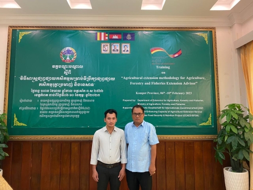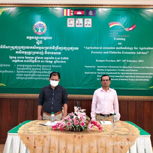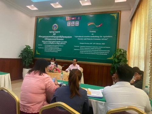 ថ្ងៃច័ន្ទ១រោច ខែមាឃ ឆ្នាំខាល ចត្វាស័ក ព.ស២៥៦៦ ត្រូវនឹងថ្ងៃទី០៦ខែកុម្ភ: ឆ្នាំ២០២៣ លោក ម៉ែន វណ្ណ: ប្រធានការិយាល័យផ្សព្វផ្សាយកសិកម្ម បានចូលរួមវគ្គបណ្តុះ បណ្តាលស្តីពី វិធីសាស្រ្តផ្សព្វផ្សាយកសិកម្ម សម្រាប់ទីប្រឹក្សាផ្សព្វផ្សាយកសិកម្ម រុក្ខាប្រមាញ់ និងនេសាទ ដោយមានការអញ្ជើញជាគណៈធិបតីភាព ពីលោក សេក សំអុន ប្រធានការិយាល័យអភិវឌ្ឍន៍ធនធានមនុស្ស និង លោក អេង ឈាង ហុង អ្នកជំនាញការកសិកម្ម គម្រោងពហុវិស័យ និងសន្តិសុខស្បៀង និងអាហារូបត្ថម្ភ ។កម្មវិធីនេះ មានរយៈ ពេល០៥ ថ្ងៃ ចាប់ពីថ្ងៃ ទី ០៦-១០ ខែ កុម្ភៈ ឆ្នាំ ២០២៣ នៅ ខេត្តកំពត ដែលរៀបចំ និងឧបត្ថមដោយទីភ្នាក់ងារប្រតិបត្តិការអន្តរជាតិអាល្លឺម៉ង់ (GIZ) និងការចូលរួមពី លោក លោកស្រី ប្រធាន អនុប្រធាន និងមន្រ្តីការិយាល័យផ្សព្វផ្សាយកសិកម្ម រាជធានីខេត្ត ទាំង២៥ រាជធានីខេត្ត សរុប៣២រូប /១២រូប។
