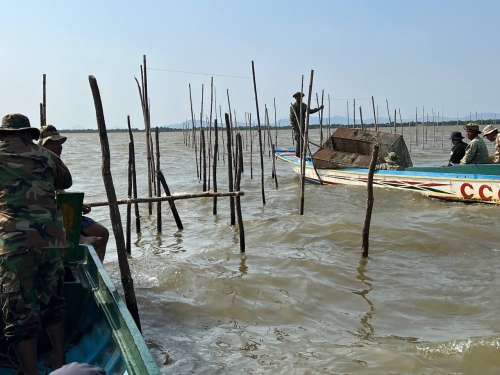 លោក ភុំ វិមល នាយខណ្ឌរដ្ឋបាលជលផលពោធិ៍សាត់ នាយផ្នែក-នាយសង្កាត់កំពង់លួង សហការជាមួយក្រុមការងារថ្នាក់ជាតិ ដឹកនាំដោយ