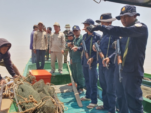 បានចេញ ប្រតិបត្តការត្រួតពិនិត្យ ទប់ស្កាត់ និងបង្ក្រាបបទ ល្មើសនេសាទ នៅចំណុច អតីតឡូតិ៍លេខ០៧ ភូមិកោះក្អែក ឃុំរាំងទិល ស្រុកកណ្ដៀង ខេត្ត ពោធិ៍សាត់ ជាលទ្ធផល÷