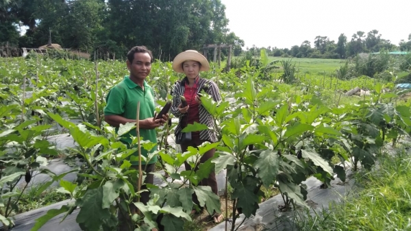លោកស្រី សួង កញ្ញា មន្រ្តីទទួលបន្ទុកដំណំាបន្លែប្រចំាស្រុកកណ្តៀងបានចុះតាមដាននិងត្រួតពិនិត្យ...